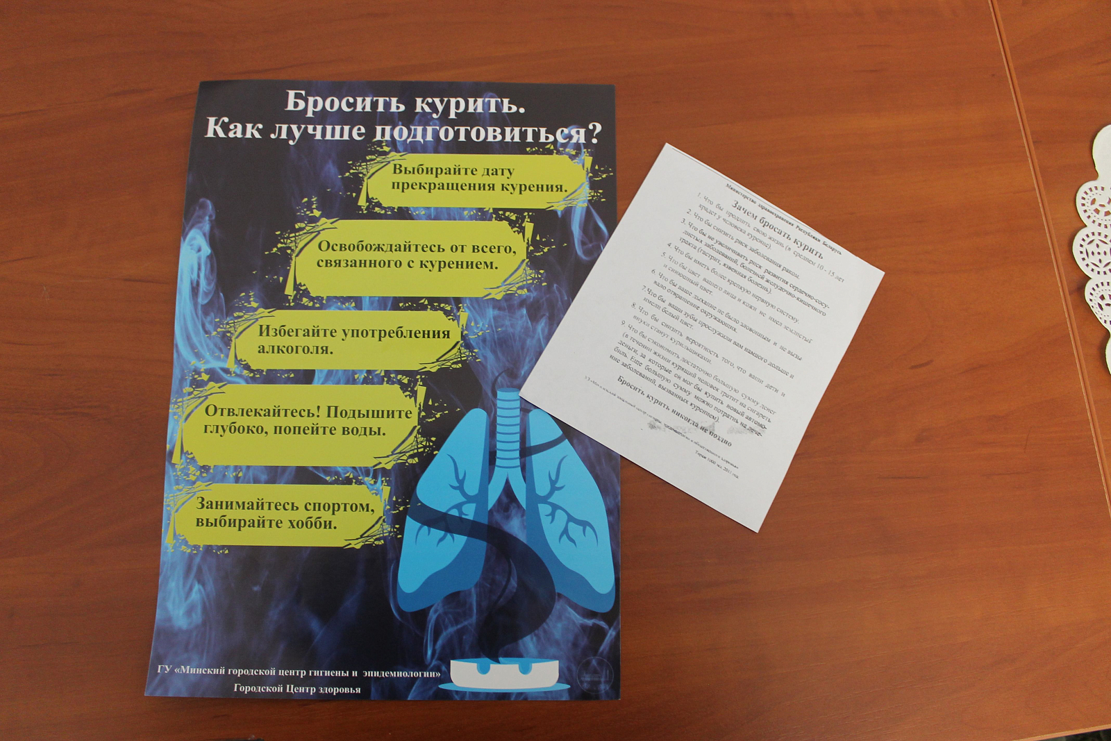 Ежегодно в третий четверг ноября повсеместно проходит Всемирный День некурения. К этой дате приурочена и республиканская информационно-образовательная антиникотиновая акция, которая проводится в нашей стране с 3 по 21 ноября.В рамках этих мероприятий государственное предприятие «Белгеодезия» организовало встречу коллектива с медработником УЗ «16-я городская поликлиника». Инструктор-валеолог рассказала присутствующим о вреде курения и о последствиях этой пагубной привычки.