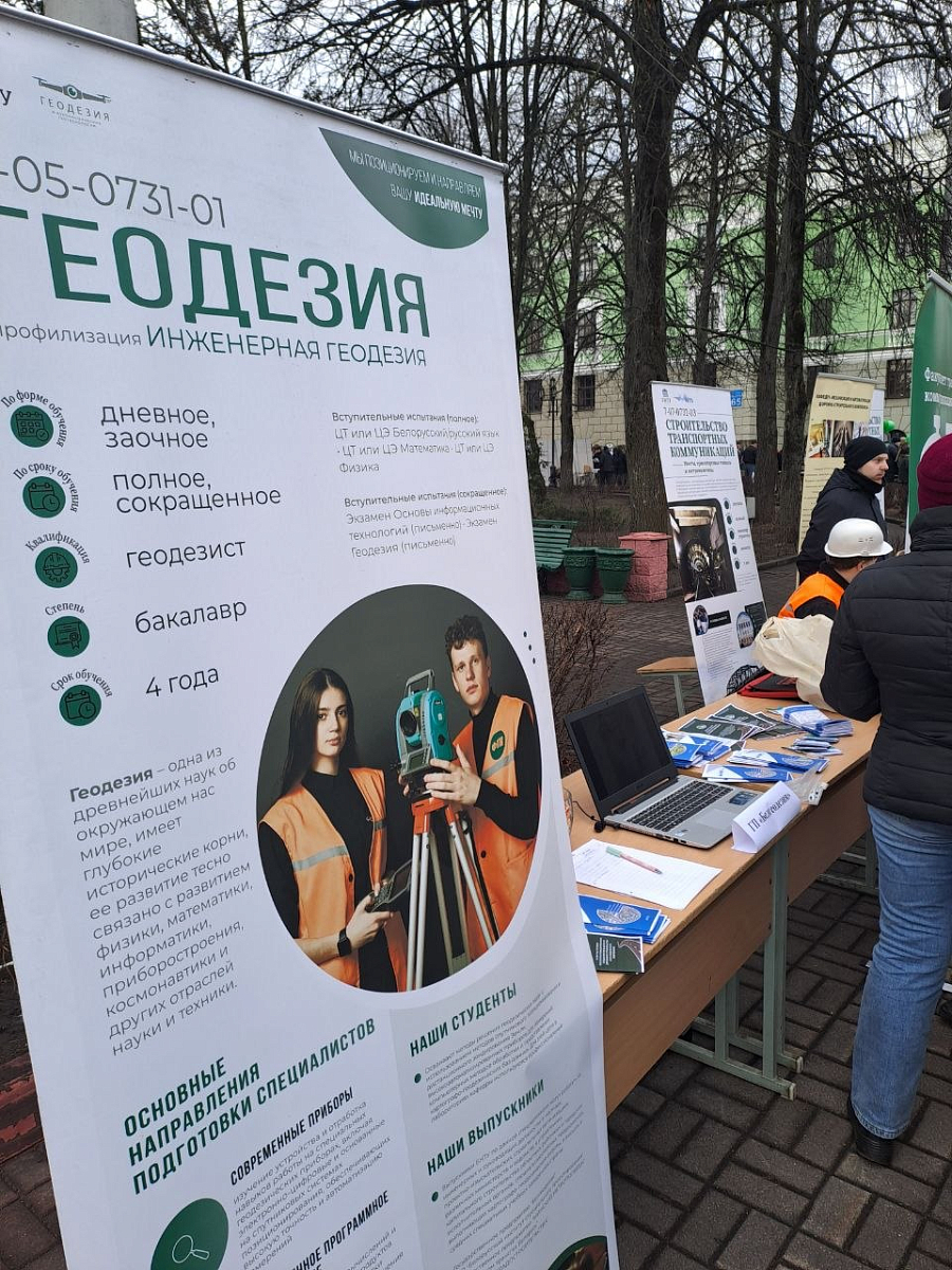 В рамках профориентационной работы государственное предприятие «Белгеодезия» приняло участие в Дне открытых дверей в Белорусском национальном техническом университете. Мероприятие прошло масштабно: работали десятки интерактивных площадок от факультетов и ведущих предприятий, проводились консультации по поступлению и профориентационное тестирование.Начальник отдела правовой и организационно-кадровой работы Ирина Якименко рассказала гостям, среди которых были сотни абитуриентов и их родителей, о деятельности предприятия, условиях целевого набора, карьерных перспективах и системе поддержки молодых специалистов. Она отметила, что предприятие является базовой организацией для прохождения студентами практики и заинтересовано в притоке молодых квалифицированных кадров.
